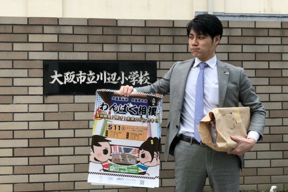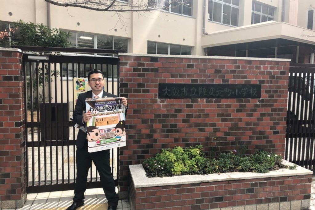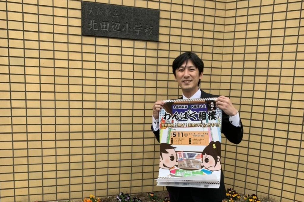 現在、私たち大阪青年会議所のメンバーは手分けをして大阪市の全ての小学校に、わんぱく相撲のチラシ・ポスターの配布と参加のお願いにお伺いさせていただいております。