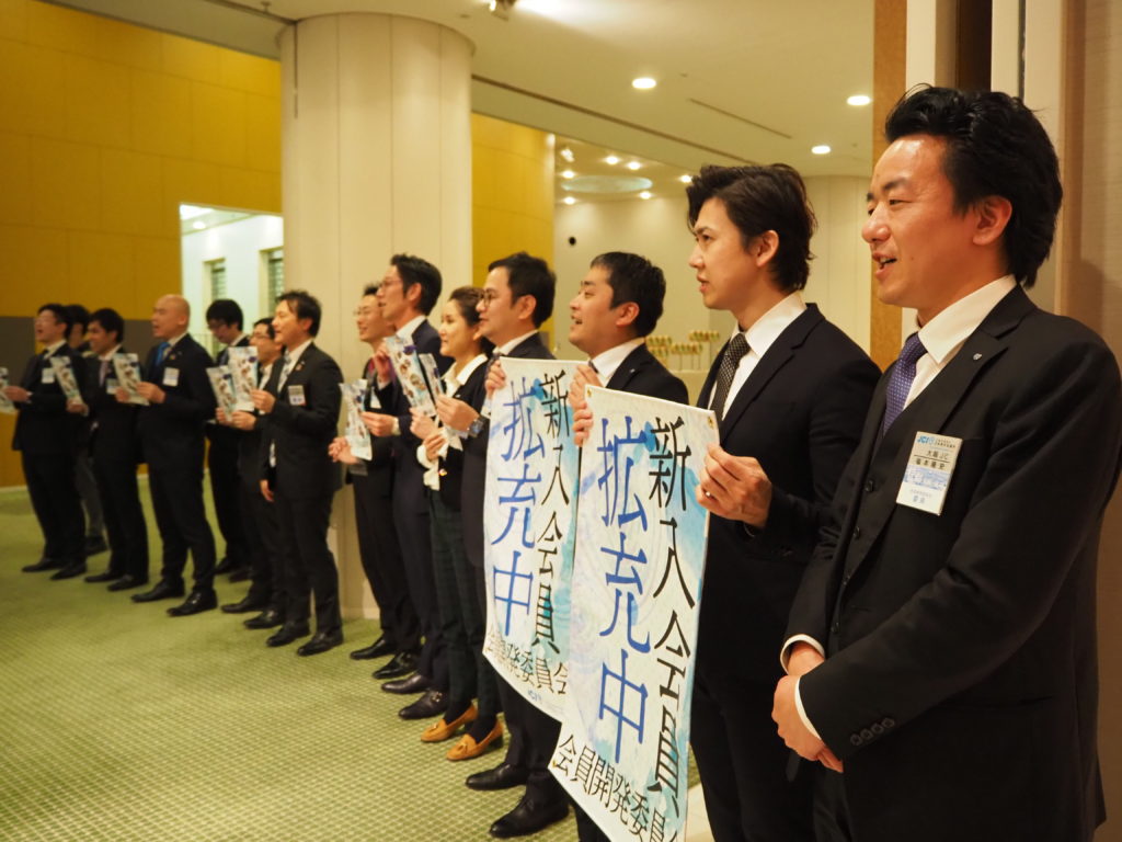 また、壇上に本年度出向者が登壇し、代表して公益社団法人日本青年会議所 国民主権確立委員会に委員長として出向されている梶本秀則常任理事より挨拶があり、今後の意気込みを語っていただきました。