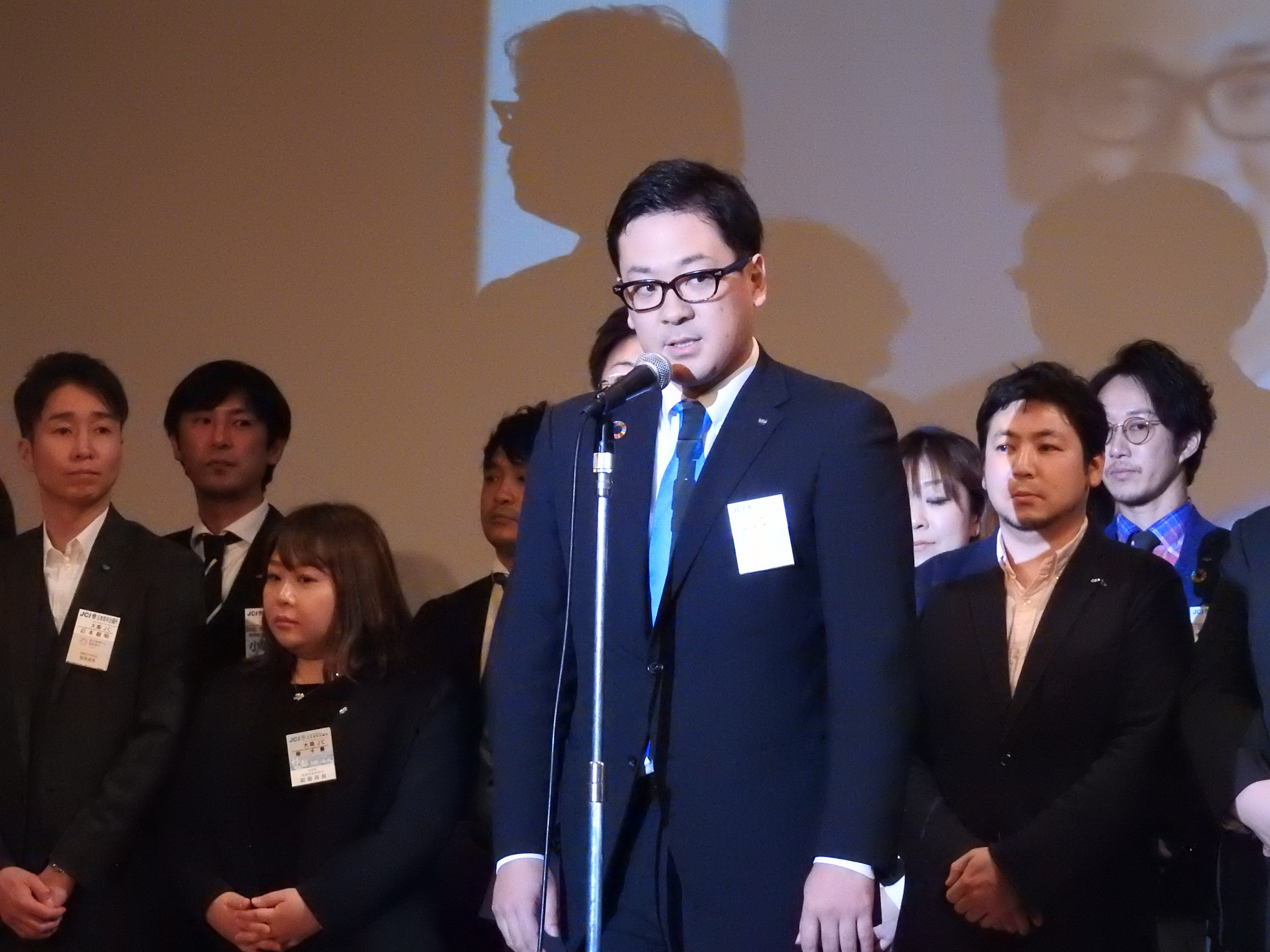 また、壇上に本年度出向者が登壇し、代表して公益社団法人日本青年会議所 国民主権確立委員会に委員長として出向されている梶本秀則常任理事より挨拶があり、今後の意気込みを語っていただきました。