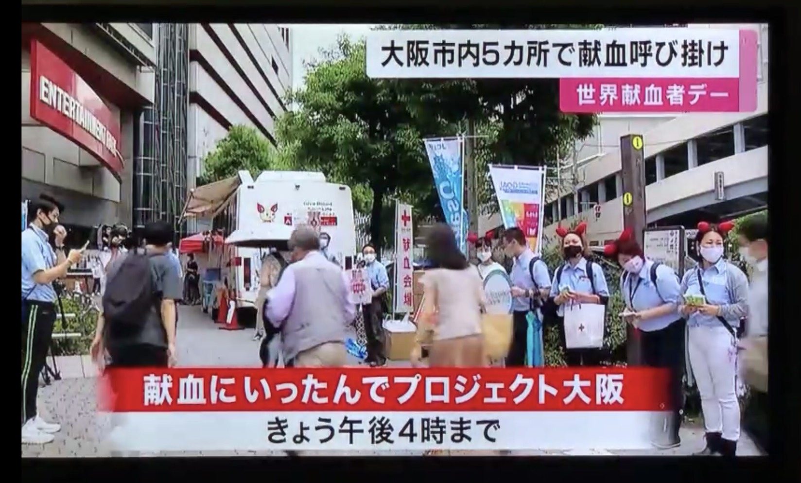 昨日「世界献血者デー」の6月14日、大阪府赤十字血液センターと協力し、 新型コロナウイルスによる外出自粛の影響で減った献血への協力を呼びかけるプロジェクト、「献血にいったんでプロジェクト大阪」を実施させていただきました。