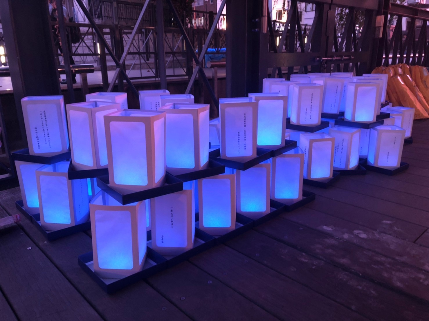 ブルーライトの灯篭によって青く染まった道頓堀川の美しい景色と癒しが、メディアやSNSを通して、世界中の皆様に届きますように。医療従事者の皆様に感謝の気持ちとひとときの安らぎが届きますように。また、大阪に住み暮らす皆様をはじめ世界中の皆様にたくさんの希望が届きますように。