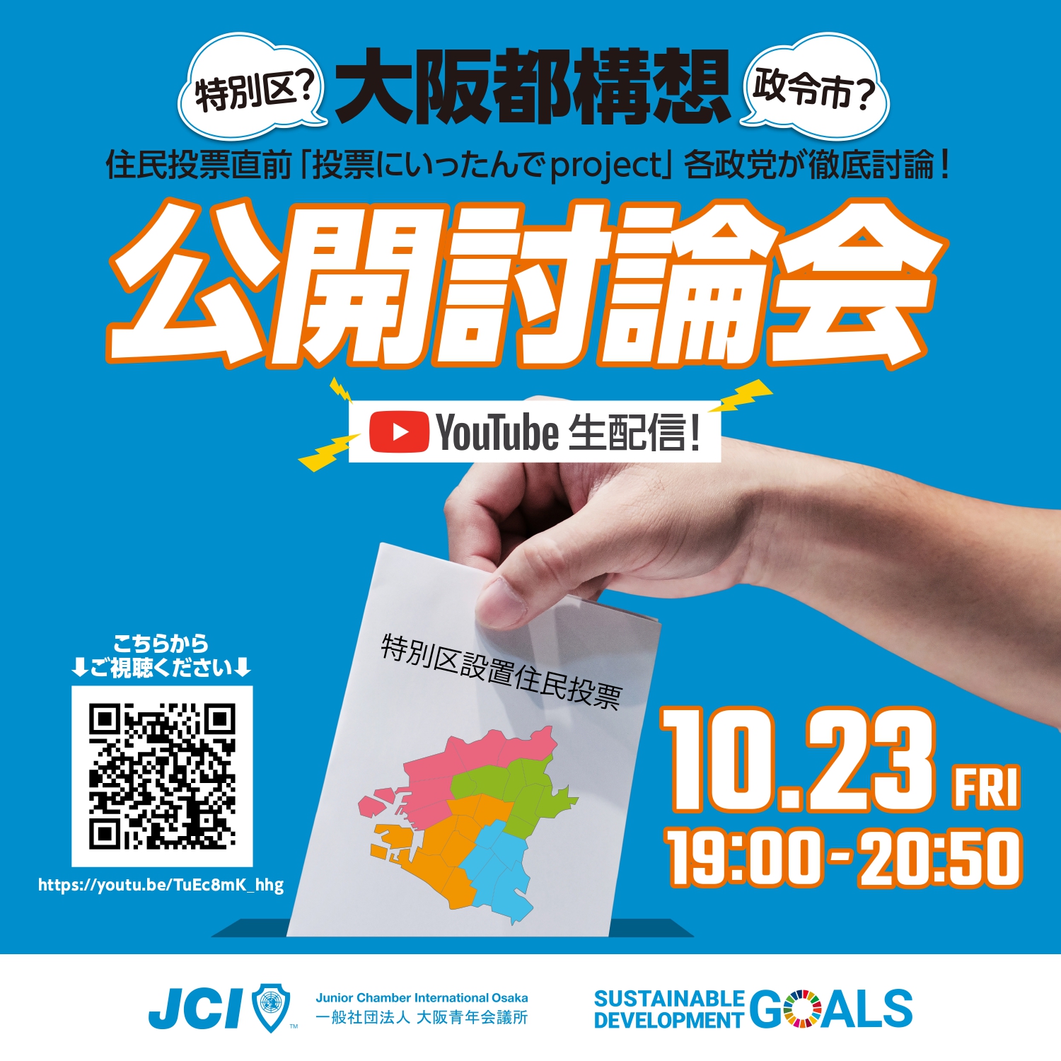 来る大阪都構想の住民投票を受け、10月23日(金)の19時より、各政党が集い大阪都構想の是非を問う公開討論会を実施します。
