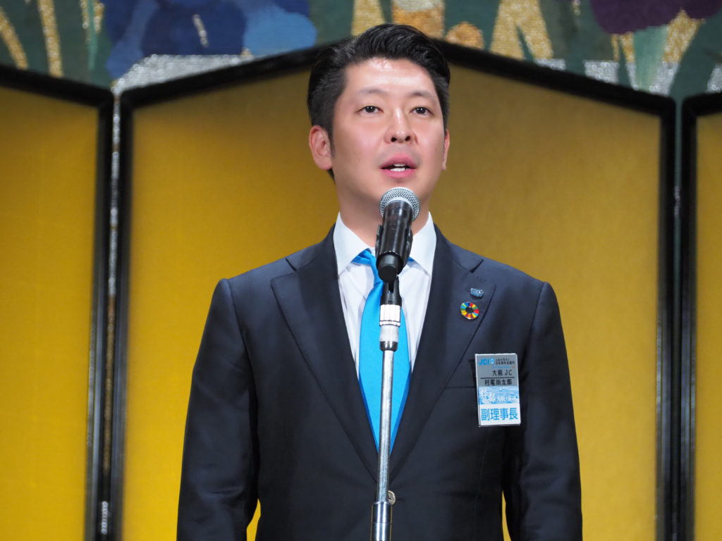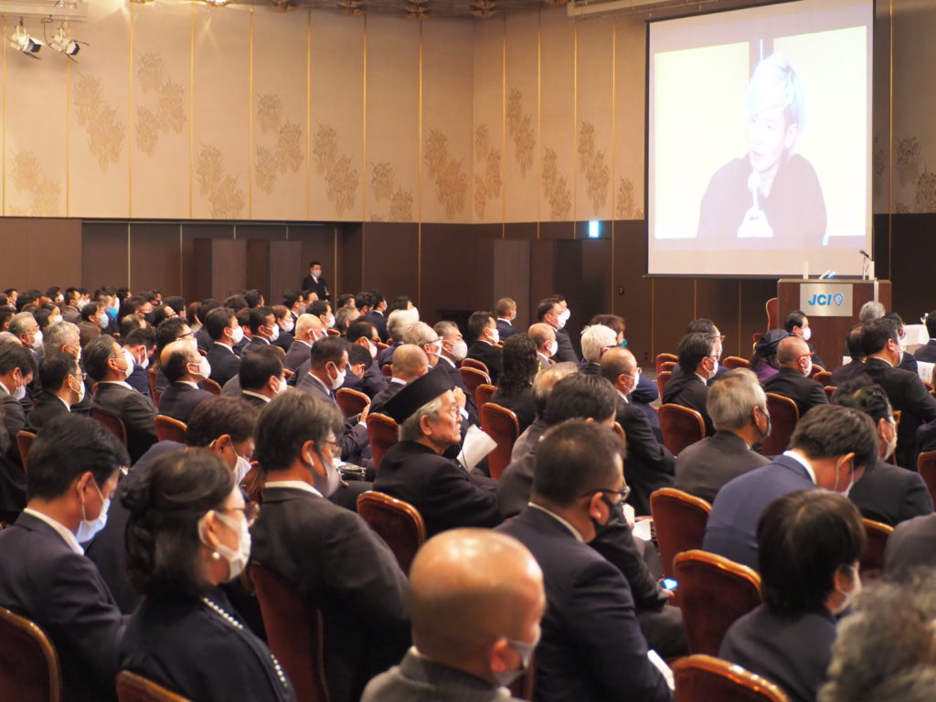 冒頭 大阪府知事 吉村洋文様より、動画にてご祝辞を頂戴しました。吉村知事より、創立から大阪に住み暮らす人びとのために活動する青年会議所の存在に敬意を表され、大阪・関西万博に向けて、大阪全体の成長発展のために全力で取り組むという熱いメッセージをいただきました。