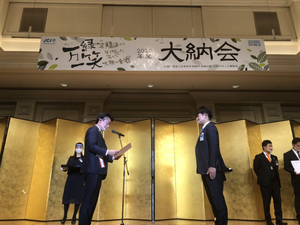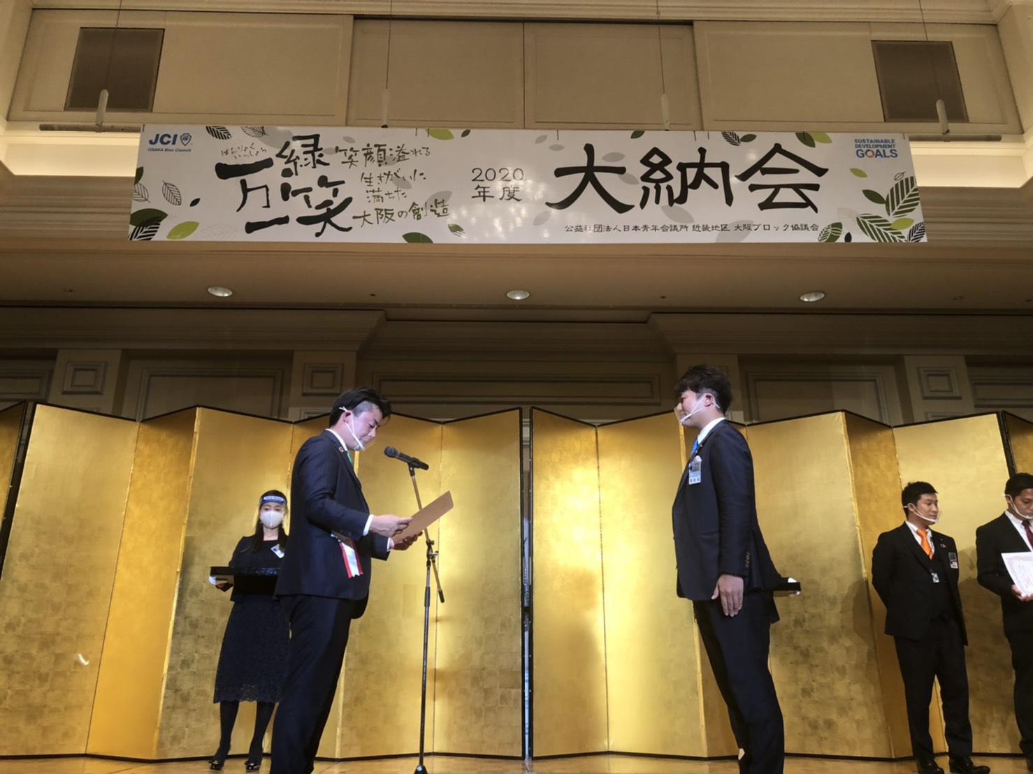 大納会の中で、大阪府下29LOMが果敢に取り組んできた事業を称えあい、今後の青年会議所運動のさらなる発展へと繋げる『大阪ブロック内褒賞授与式』が行われました。