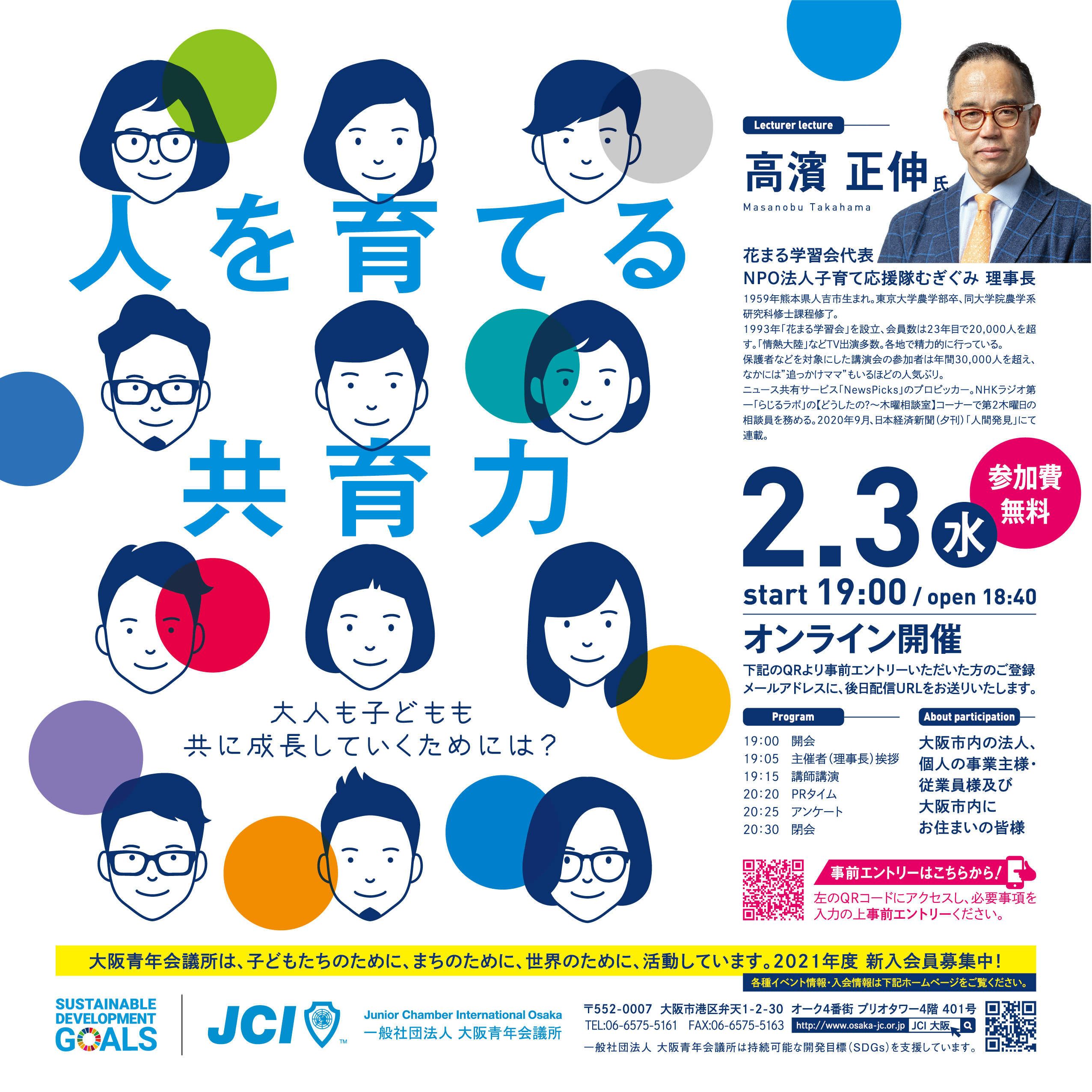 2月度月例会では、「共育」をテーマに、高濱正伸様を講師として迎え講演をしていただきます。