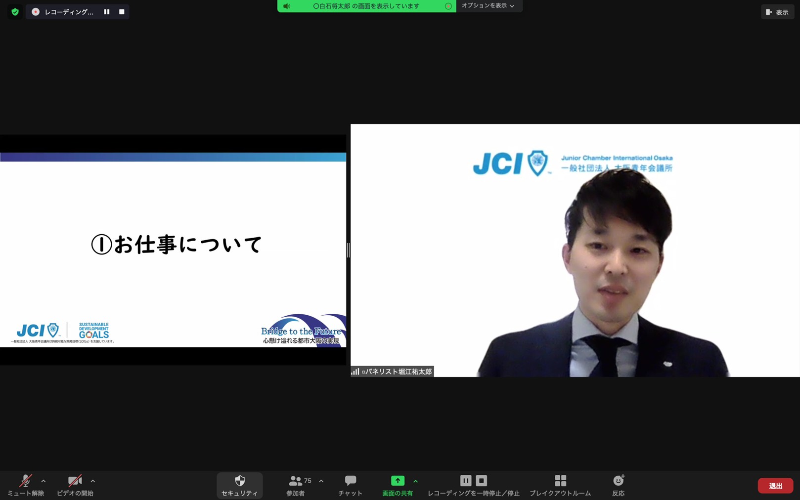 大阪青年会議所では事業説明会及び異業種交流会を実地開催ではなく、Zoomを利用しオンライン開催しております。