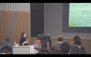 発達障がいや知的障がいがある人たちの活躍できる場が少ないのが現状であり、障がいのことを理解し、その特徴を生かせばあなたの環境などでも活躍できる人がたくさんおり、障がいのある人たちと関われば今よりもっと相手を思いやる気持ちが育まれ、おもいやり溢れる地域社会になるという内容のディスカッションが行われ、障害がどのようなものでどのようなサポートが必要なのか正しく理解すること、共に働き、自立の支援をすることが豊かな社会に繋がることを学ぶ機会となりました。