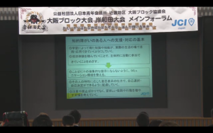 そして、2022年度大阪ブロック協議会 会長と主管青年会議所の発表があり、会長にJCI茨木 大西将人君、主観青年会議所にJCI八尾との発表がありました。