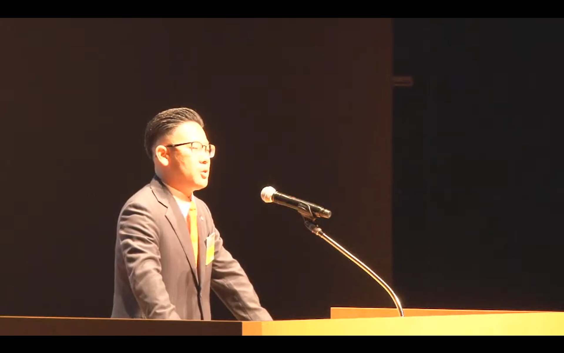 大会式典では、主管青年会議所であるJCI岸和田 理事長 泉本 真宏君の開会宣言に始まり、来賓祝辞では、岸和田市長である永野耕平氏に続き、JCI大阪よりJCI会頭として出向している小嶋隆文君より祝辞がありました。本大会が盛大に開催されたこと、東野会長を始めとする大阪ブロック協議会の皆様のJCIへのご支援ご協力についての感謝の意が述べられました。