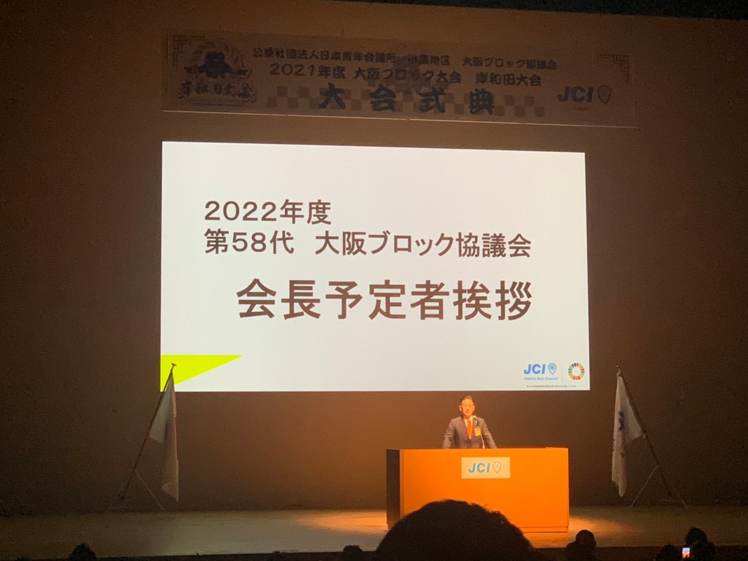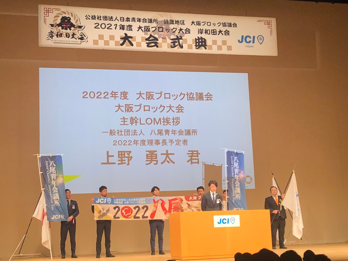 そして、2022年度大阪ブロック協議会 会長と主管青年会議所の発表があり、会長にJCI茨木 大西将人君、主観青年会議所にJCI八尾との発表がありました。