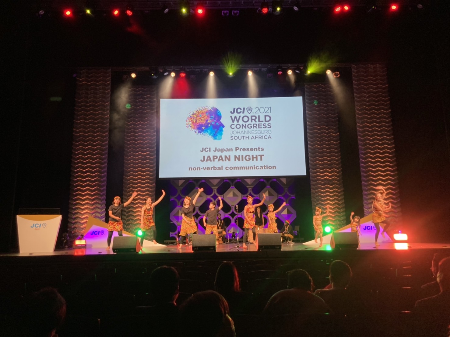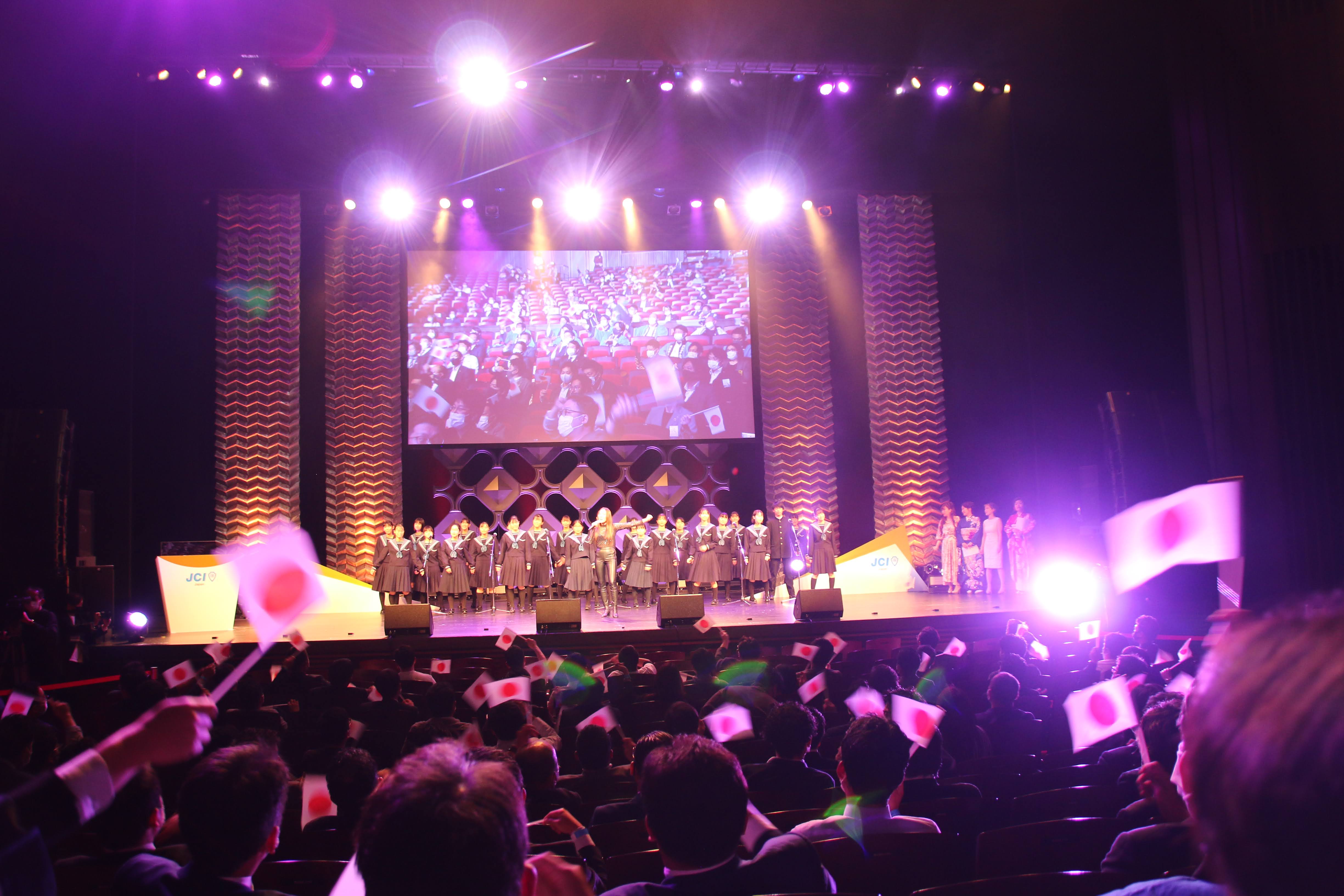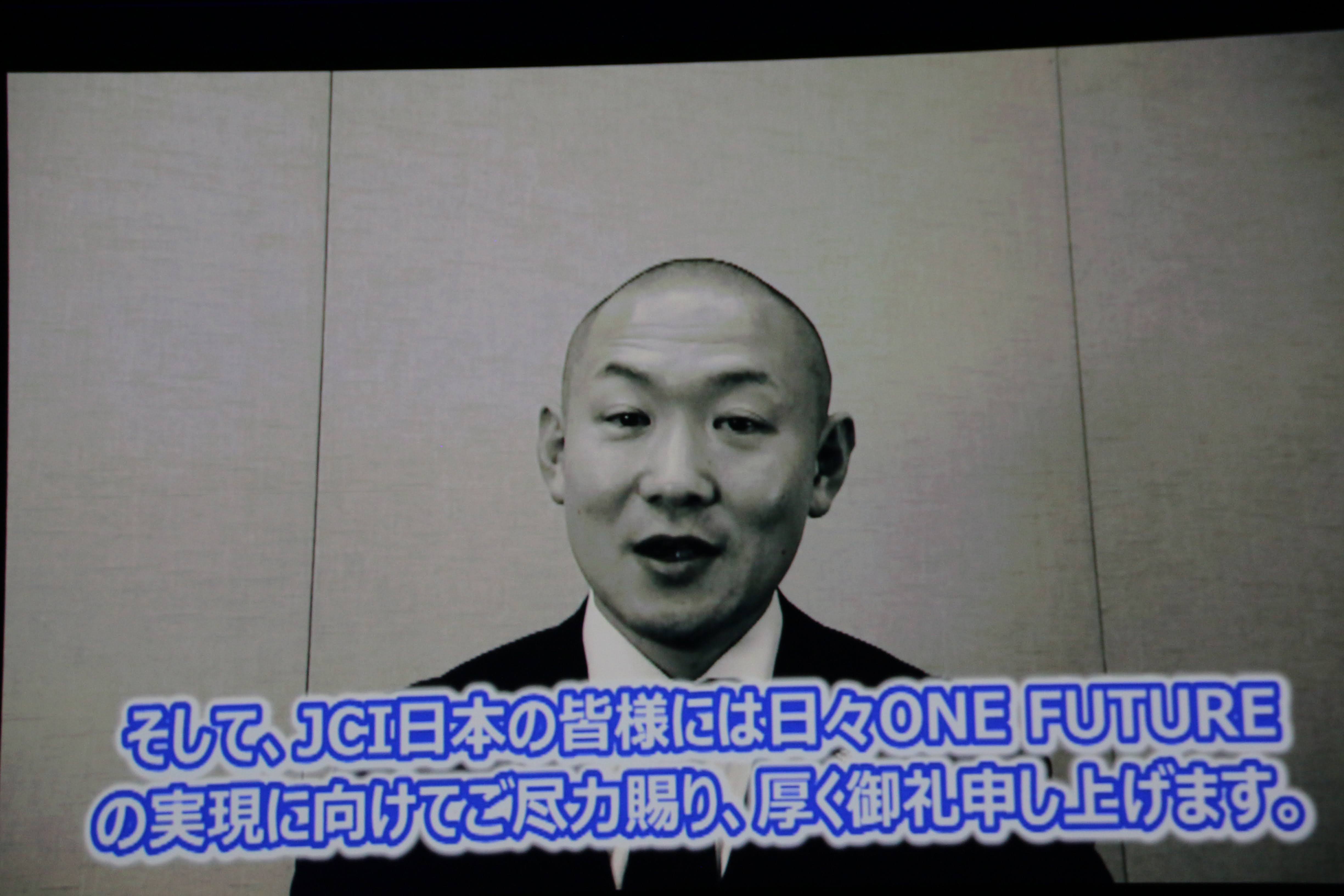 会場では参加者が手に持つ日本国旗が揺れ、オープニングから盛り上がった雰囲気の中、JCI日本会頭 野並 晃君より開会の挨拶、JCI会頭 小嶋 隆文君より主催者挨拶、各国会頭とwebを繋ぎ、世界会議実行委員会委員長 シンフィエ・ズマ君より大会開催国としての挨拶があり、日本にいながらも、ヨハネスブルグの世界会議開催を喜ぶ雰囲気が十分に感じることができました。