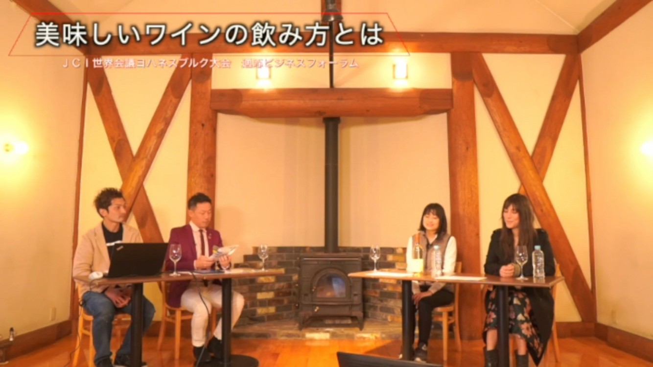 三澤氏より、実際に南アフリカワインのテイスティングをしながら、南アフリカワインの特徴や気候変動の影響等について説明がありました。特に、南アフリカの干ばつへの適応として、原料となるブドウの品種や栽培方法の工夫などを挙げ、中央葡萄酒株式会社の醸造責任者の立場でサスティナブルな事業展開について持論を述べられ、マリエ氏からは、アパレル業界では、衣服が製造されては廃棄されるという無駄が繰り返されていることに言及し、この点について消費者自らの意識を変えていくことが必要であると述べられました。