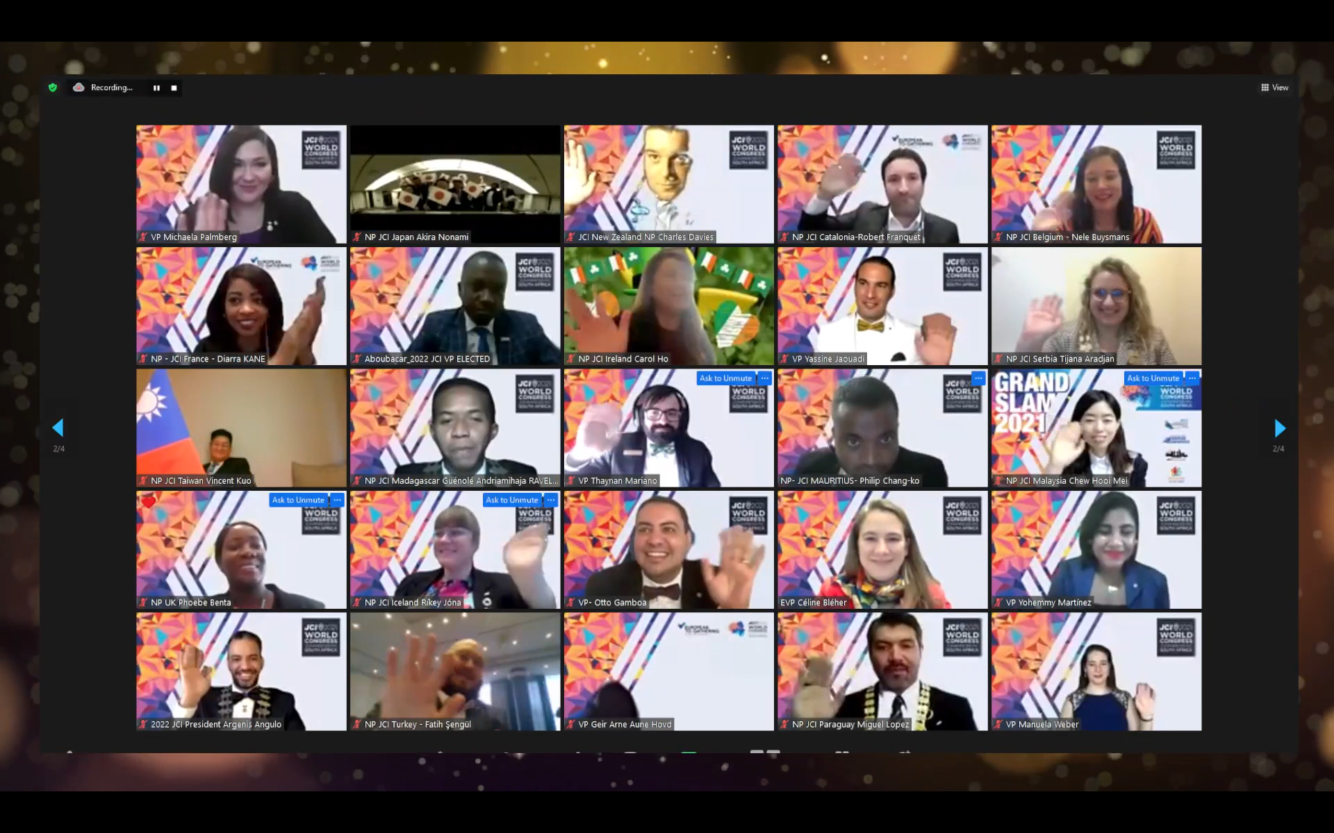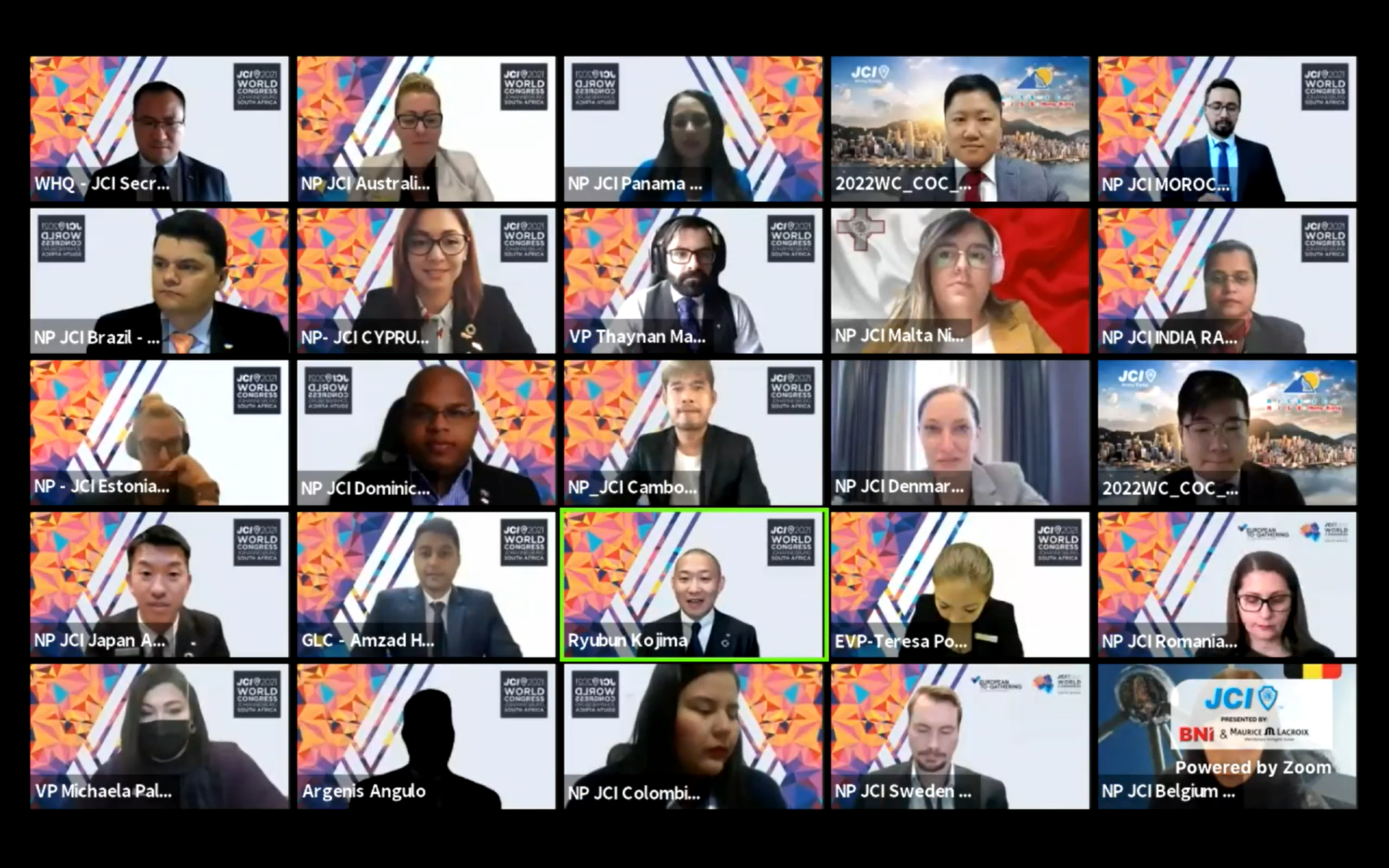 また、21時30分より開催されました総会Ⅲでは、 2022年度JCI役員の担当国及び指名委員発表、2022年度世界会議の開催地として香港が決定されました。