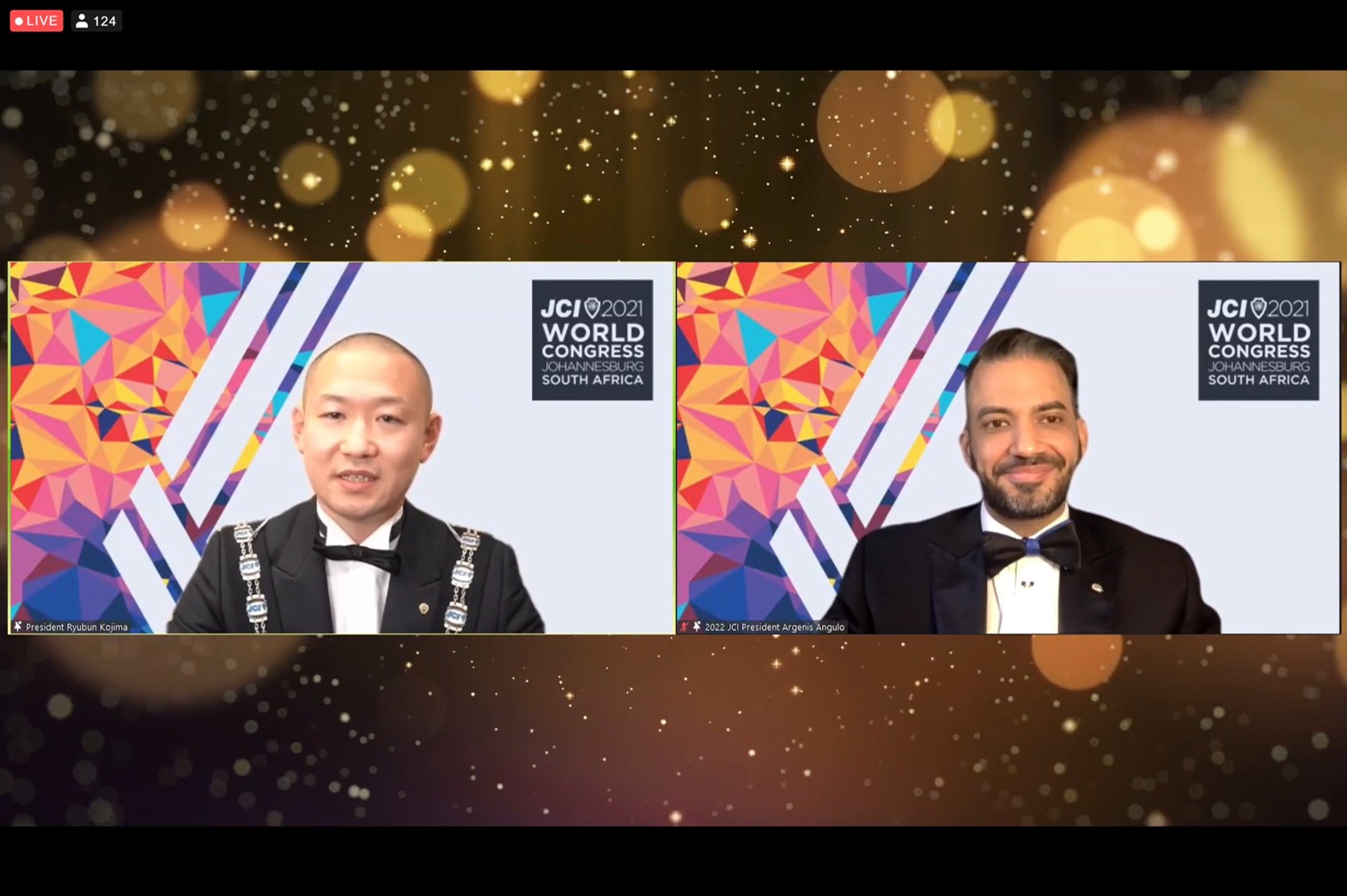 クロージングセレモニーでは、2021年度JCI会頭 小嶋隆文君より2022年度JCI会頭Argenis Angulo氏への引継ぎ式が行われました。