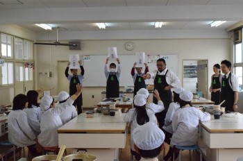 昆布のダシを取った味噌汁と、取っていない味噌汁で味比べを行い、昆布ダシの旨さを味わってもらいました。