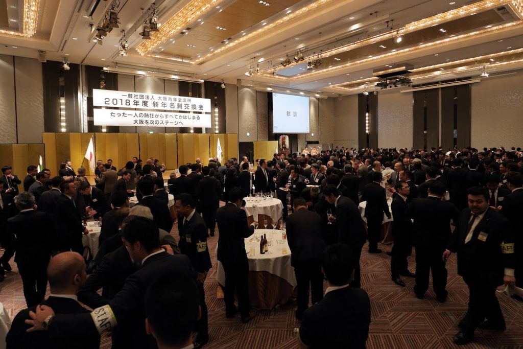 新年名刺交換会では、理事長 小嶋隆文君のもと「善が循環する国際都市大阪の実現」 にむけて、2019年度 取り組む政策の発信を行います。