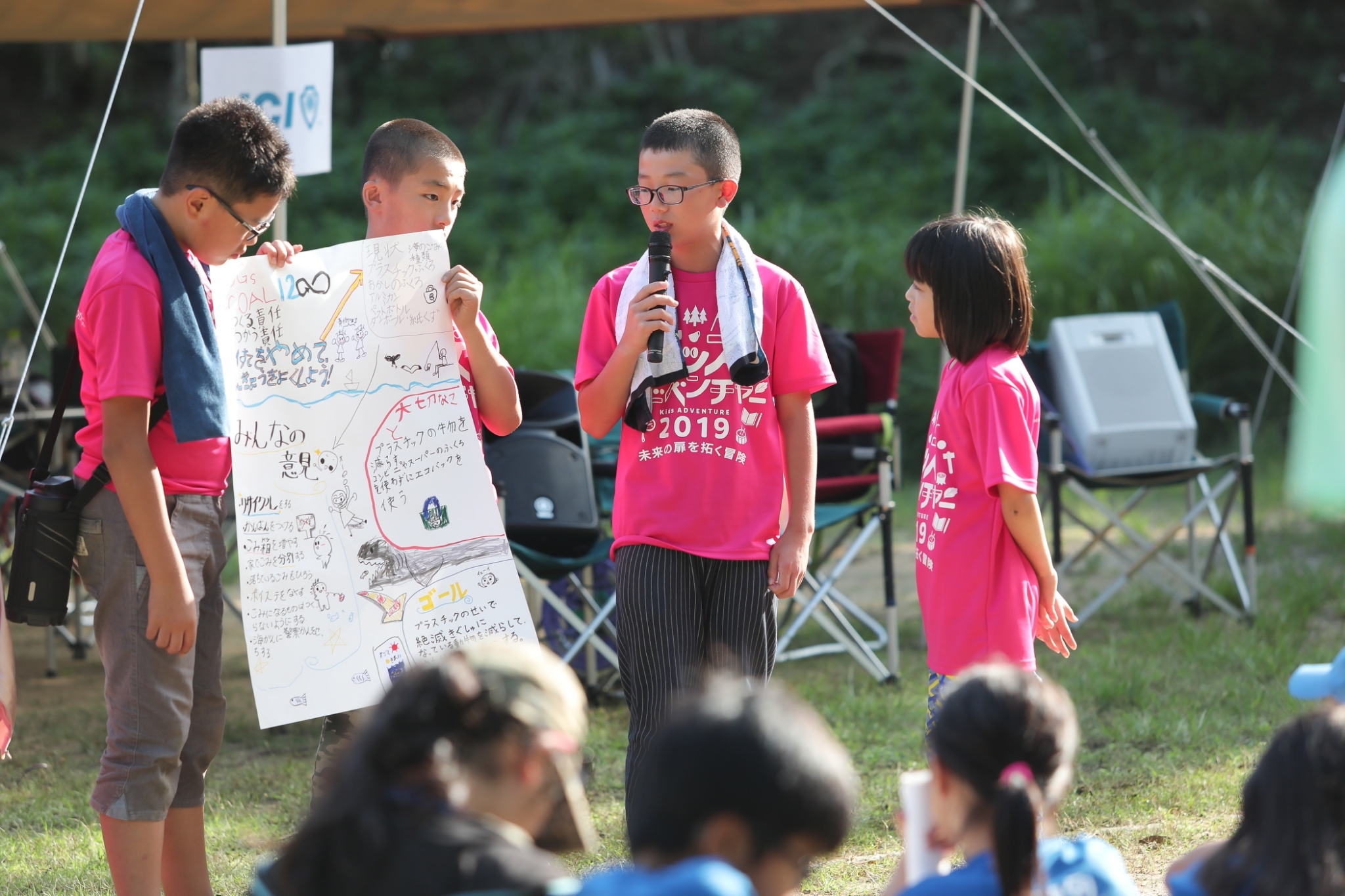 最後に行われた閉会式では、各班のリーダーから、インプットしたことや「未来フェス」への意気込みが発表され、2日間に渡って開催されました、キッズアドベンチャー2019は滞りなく終了しました。