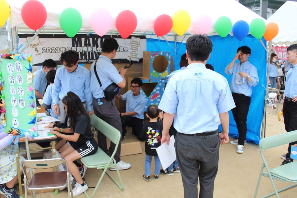 新入会員のメンバーが特に力を入れて取り組んだのが、大会と同時開催した親子で楽しめるイベントブースの運営です。新入会員のメンバーは連日のようにどのようなイベントブースにすれば親も子どもも楽しめるのか、を徹底的に議論し、親子のコミュニケーションが取れるような折り紙など様々な10個のブースを作りました。