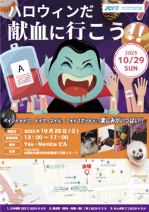 10月29日(日)13:00よりYes・Nambaビルにて、若者に向け、ハロウィンと献血を掛け合わせた献血イベント、「ハロウィンだ!献血に行こう!!」を開催します。