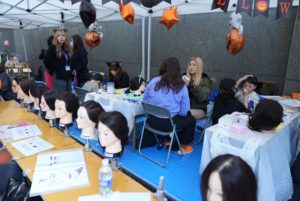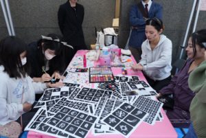 当日は、大阪夕陽丘学園短期大学・梅花女子大学・ECCアーティスト美容専門学校・大阪府学生献血推進協議会の学生の皆さんと一緒にハロウィンにちなんだネイル、メイク、フェイスペイント等のブースを準備しました。