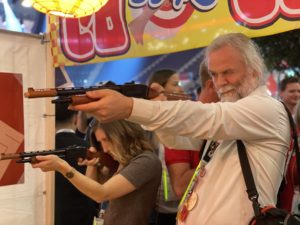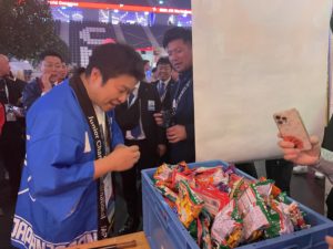 ジャパンナイトでは、日本の駄菓子を景品とした、射的体験ブースを設営しました。世界中のJCメンバーからとても好評で、開始から終了まで、海外のメンバーの大行列ができていました。