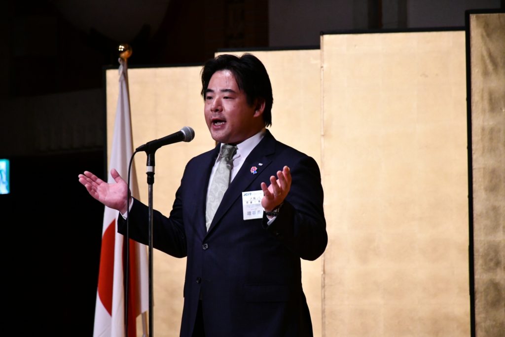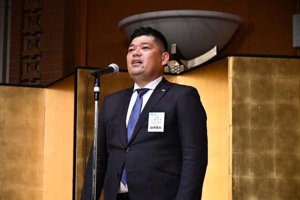 また、2025年度第75代理事長予定者の山岸将幸君に、ご挨拶をいただき、OBのみなさまに次年度理事長を披露させていただきました。