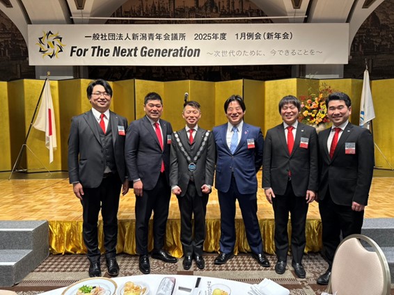 一般社団法人新潟青年会議所が主催する一月例会並びに新年賀詞交歓会に更家直前理事長、山岸理事長、森垣専務理事、菊池常任理事、高橋理事が参加してまいりました。