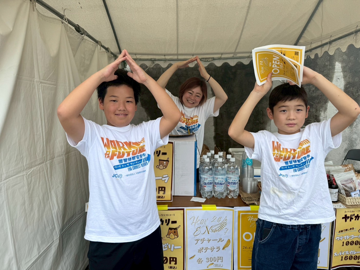 会場には、地域ビジョン確立委員会の職業体験事業に協力してくださった企業やお店の方々と、子どもたちが共同で出店するブースも並び、子どもたちが一日店長となり、食事の提供や商品販売を元気に行なっていました。