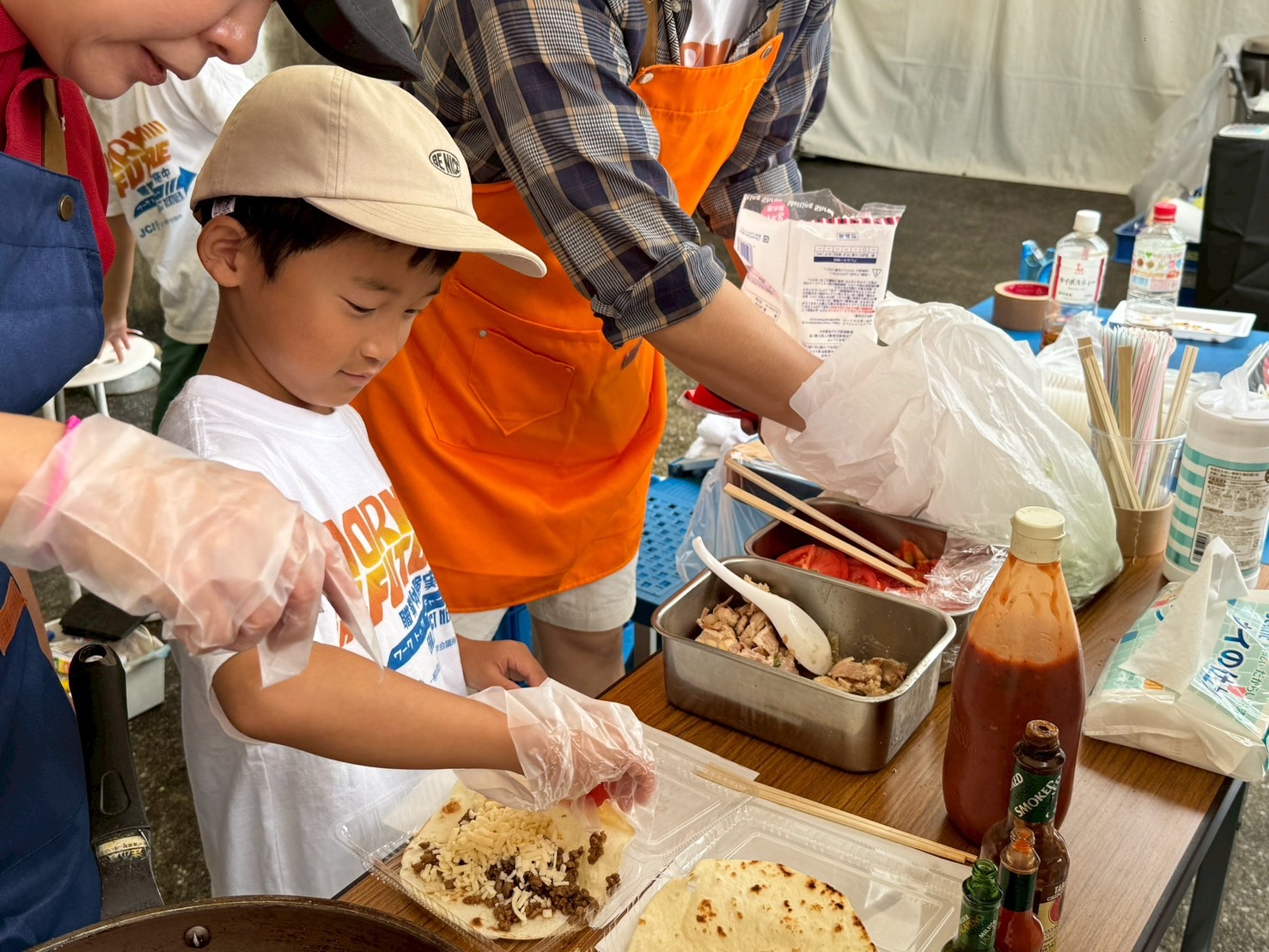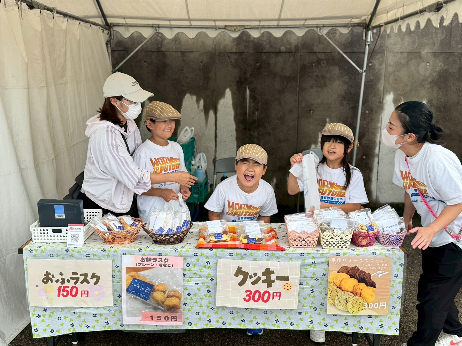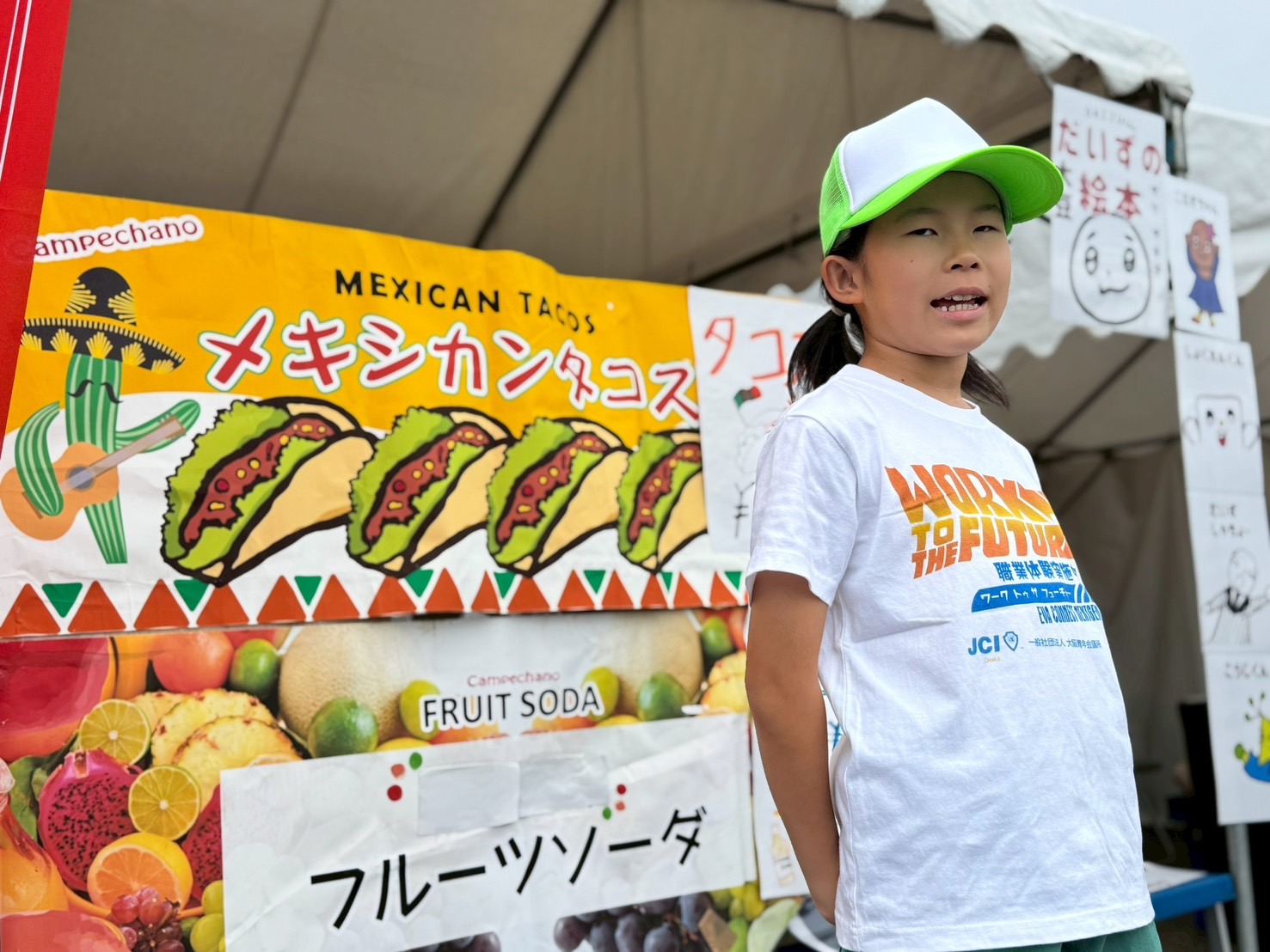会場には、地域ビジョン確立委員会の職業体験事業に協力してくださった企業やお店の方々と、子どもたちが共同で出店するブースも並び、子どもたちが一日店長となり、食事の提供や商品販売を元気に行なっていました。