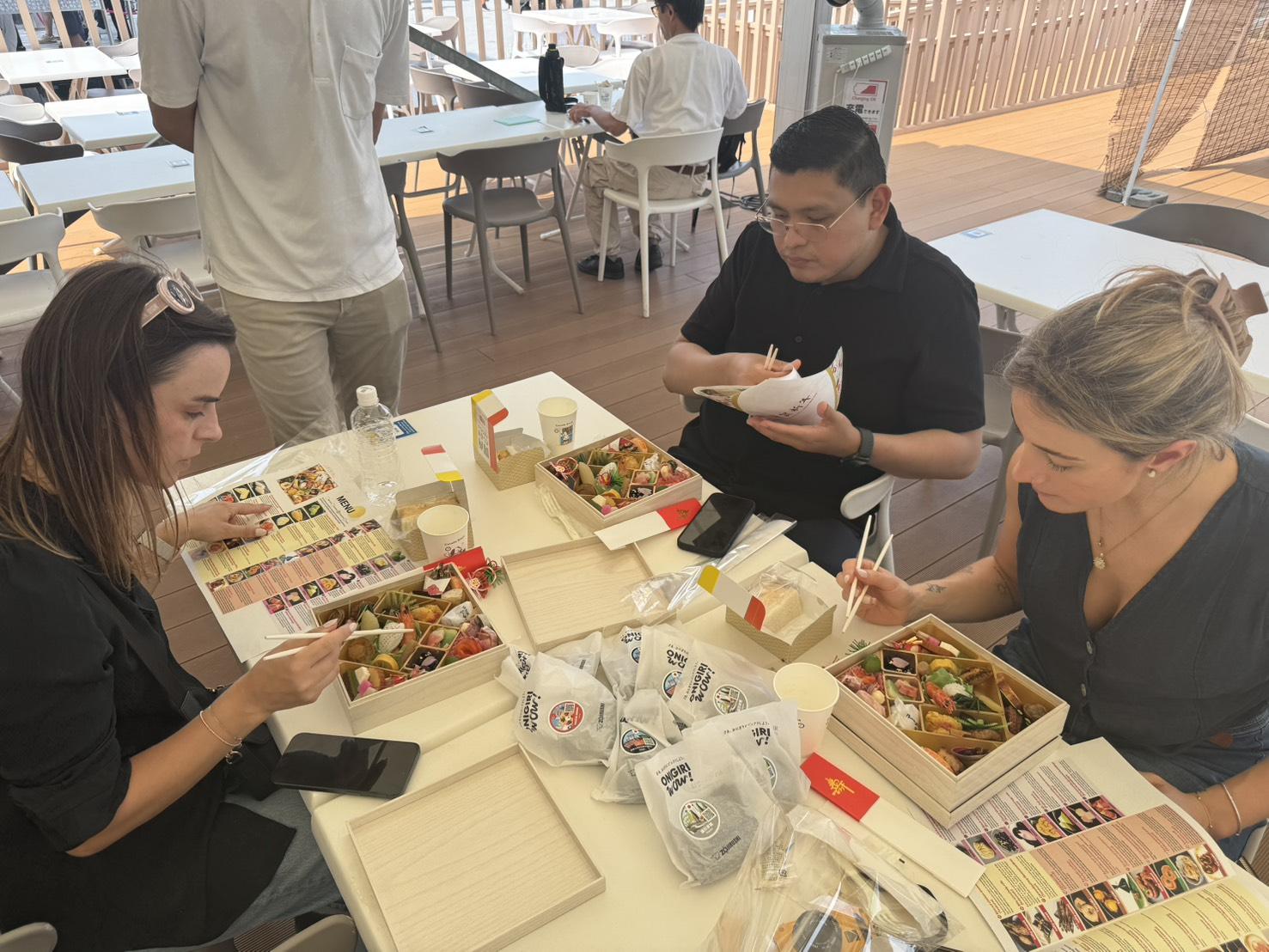 The 2025 TOYP members and JCI Osaka members visited the Osaka–Kansai Expo, where they toured four pavilions and enjoyed this global event together. For lunch, they had a traditional Japanese osechi meal served as a bento box at the Digital Wallet Park, allowing them to experience Japanese culture through food.