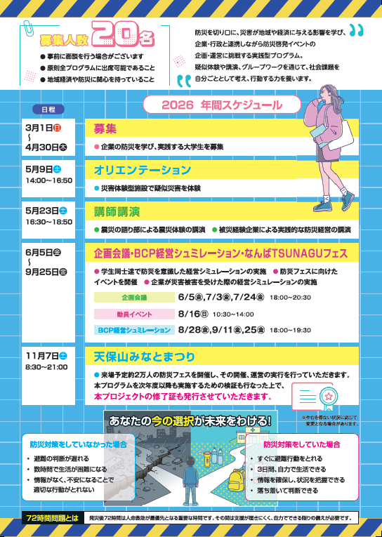 という実践を通じて、「社会を動かす側」の視点と経験を身につけます。ただ学ぶだけではなく、大阪の未来を“自分たちの手で創る”経験をしてみませんか。
